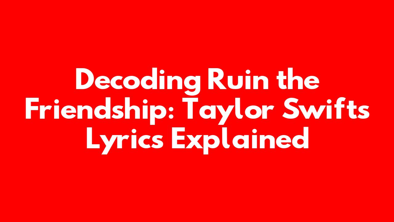 Taylor's lyrics are rich with imagery and symbolism. Understanding these elements can significantly deepen our appreciation of "Ruin the Friendship." Here are some common themes and symbols you might find in a song like this: