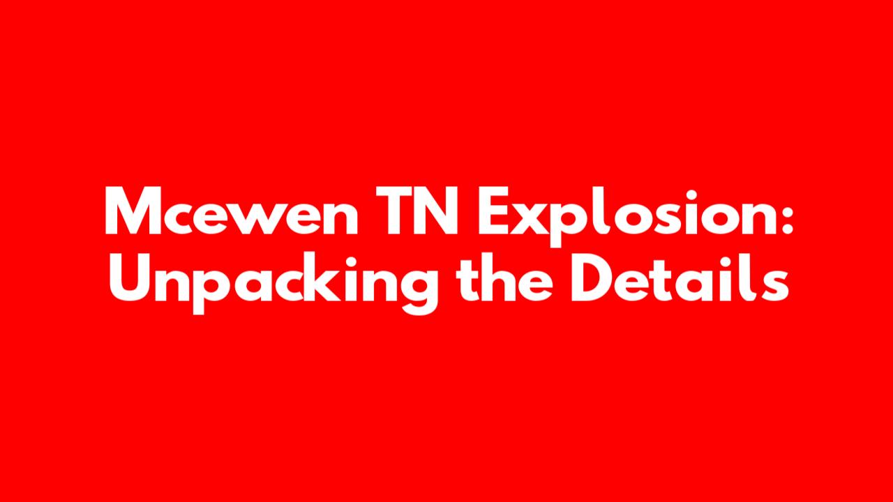 Hey guys, let's dive into the Mcewen TN explosion, a topic that's sparked a lot of interest and concern. We'll break down exactly what happened, what we know so far, and why this event is significant. This isn't just about a headline; it's about understanding the context, the potential causes, and the impact on the community. So, buckle up, and let's explore this in detail. We're going to look at the immediate aftermath, the ongoing investigations, and the long-term implications. The goal is to provide a comprehensive overview, so you can grasp the full scope of the situation. Ready? Let's get started!