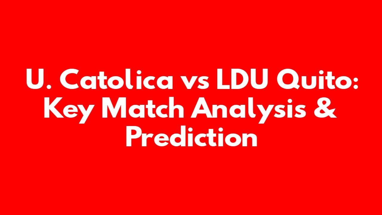 Hey guys! Get ready for an in-depth look at the upcoming clash between U. Catolica and LDU Quito! This is a match you definitely don't want to miss, and we're here to break down everything you need to know, from the teams' current form to key players and our predictions. So, let's dive right in!