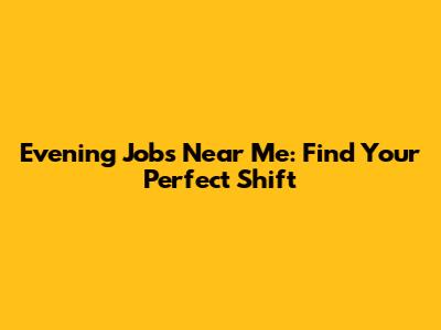 Evening Jobs Near Me: Find Your Perfect Shift