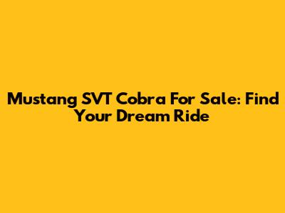 Mustang SVT Cobra For Sale: Find Your Dream Ride