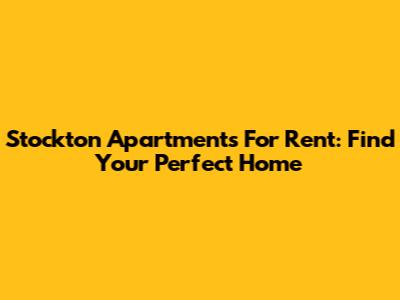 Stockton Apartments For Rent: Find Your Perfect Home