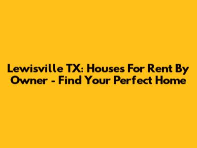 Lewisville TX: Houses For Rent By Owner - Find Your Perfect Home