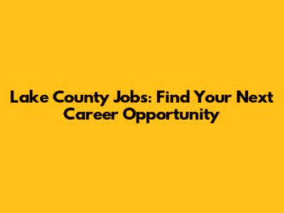 Lake County Jobs: Find Your Next Career Opportunity