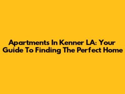 Apartments In Kenner LA: Your Guide To Finding The Perfect Home
